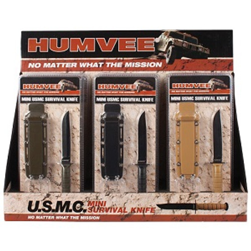 This Mini USMC Survival Knife from Humvee provides all the benefits of the standard issue Marine fixed blade in a small EDC package. At just 6" long this makes the perfect everyday carry neck knife...